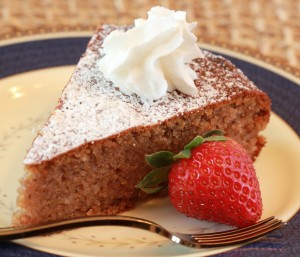 [3] Bake about 35 to 40 to minutes or until a toothpick inserted into the center comes out clean. The cake rises as it bakes, then falls slightly as it cools. Watch carefully toward the end because it is more likely to burn due to the honey. Cool the cake in the pan 15 minutes on a wire rack. Cut around edge of the pan with a sharp knife to loosen the cake. Release pan sides; discard paper liner. Dust with powdered sugar, cut into slices, and serve. Makes 10 servings.