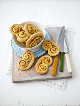 Remove the palmiers from the oven and let cool on the baking sheet. To serve, pile them high on a plate. These are great little canapes for waiting guests.