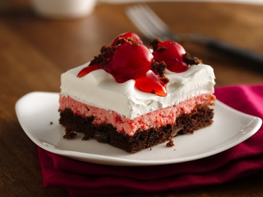 4 Spread whipped topping over cream cheese layer. Top with spoonfuls of the reserved cherry pie filling. Coarsely crumble baked cookies; sprinkle over top of bars. Refrigerate at least 1 hour for flavors to blend. To serve, cut into 5 rows by 4 rows. Store covered in refrigerator.