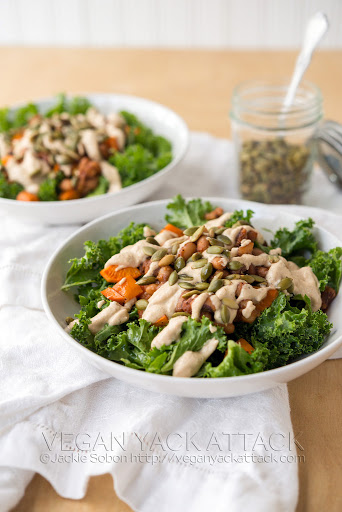 Then cover the raw cashews with very hot water and soak them for 10 minutes. Drain and rinse the cashews and place them in a blender, along with the rest of the dressing ingredients, including the "buttermilk". Blend until very smooth, you may need to scrape the sides of the pitcher a couple of times to puree everything; especially because this is a low amount of material.