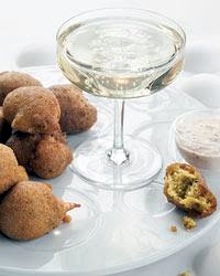 F&W’s Emily Kaiser created these crispy hush puppies—cornmeal dumplings—by adapting a recipe from chef Susan McCreight Lindeborg. (Lindeborg ran the kitchen at Washington, DC’s Morrison-Clark Inn when Emily worked there as a line cook.) Emily serves them with a version of the creamy French sauce remoulade, which she spikes with Tabasco and a little ketchup.