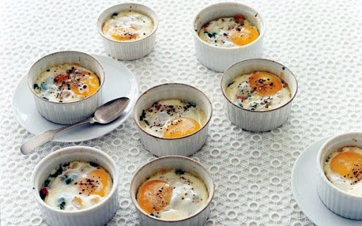 BAKED EGGS w/CREAM, SPIN & HAM