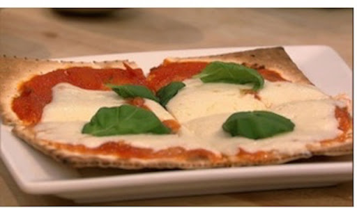 Remove from oven and lay basil leaves on top of the pizza. Cut each matzoh into 4 squares and serve.