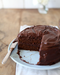 Set one cake, right-side up, on a serving platter. Using a metal spatula, spread one-third of the Chocolate Frosting evenly over the cake. Top with the second cake and frost the top and sides with the remaining frosting.