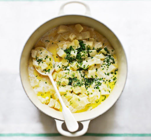 1. Combine potatoes, cream, and butter in a large saucepan; season with salt.
