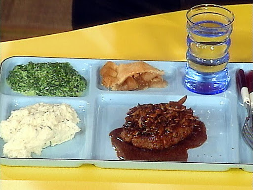 To serve, pour gravy over Salisbury steak. Serve potatoes and creamed spinach alongside the steaks. Now that's a TV dinner, DELUXE!