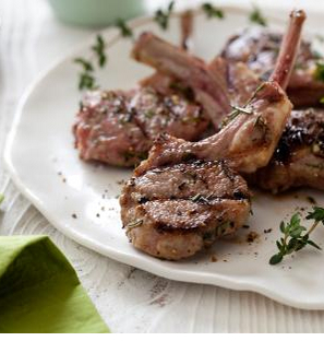 In a food processor fitted with a metal blade add the garlic, rosemary, thyme, cayenne, and salt. Pulse until combined. Pour in olive oil and pulse into a paste. Rub the paste on both sides of the lamb chops and let them marinate for at least 1 hour in the refrigerator. Remove from refrigerator and allow the chops to come to room temperature; it will take about 20 minutes.