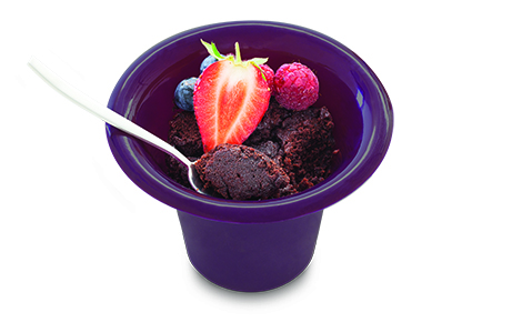 4. Lightly oil two Epicure Cakes for One with Epicure Silicone Basting Brush. Divide the batter between the two molds and microwave on high for 1½–2 minutes until cooked. A toothpick should come out nearly clean.