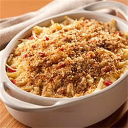 In a medium bowl, mix together breadcrumbs and butter. Sprinkle evenly on top of Hash Brown mixture.