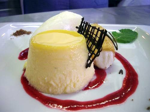 FLAN DE QUESO SOBRE COULIS DE FRESA