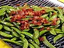 In a medium skillet over medium high heat, brown chopped bacon. Using a slotted spoon, remove bacon to a paper towel lined plate. Add onion to the pan. Saute chopped onions 3 minutes or so, until they are just tender. Add peas and water to the pan. Cover and cook peas 5 minutes. Uncover and allow the liquid to cook almost out of the pan. Add bacon back to the skillet and remove pan from heat. Transfer to a serving dish and enjoy!