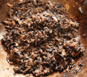 7. Cook, stirring frequently, until mushrooms appear dry and are beginning to brown; about 5 minutes.