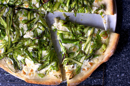More ways to tweak this: Pinch of red pepper flakes (toss with asparagus), squeeze of lemon juice (over the asparagus, after you remove it from the oven), sprinkle of truffle salt or few drops of truffle oil (if you’ve got it; also at end) or up to 3 eggs (bake pizza for 8 minutes, break eggs on top, then finish cooking pizza and eggs together)