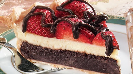 * Prepare the pie and let it cool. Do not garnish it with the fudge or strawberries. Wrap it tightly and refrigerate it for up to three days, or freeze for up to two weeks. To thaw the frozen pie unwrap it and refrigerate it for two to three hours. Bring the pie to room temperature, decorate it with the fudge and strawberries, and serve.
