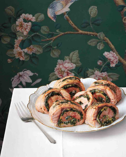 Place rolls in a baking dish and drizzle with oil, rubbing to coat. Season with salt and pepper. Roast until salmon is opaque on outside but still pink inside, about 15 minutes. Serve, with remaining yogurt mixture alongside.