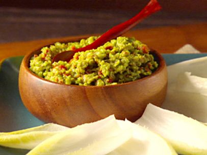 Combine the peas, sun-dried tomatoes, and garlic in a food processor. Pulse the machine until the peas and tomatoes are finely chopped. Add the olive oil and pulse until the olive oil is incorporated and the mixture is minced but not yet pureed. Transfer to a small bowl and stir in the salt and pepper.