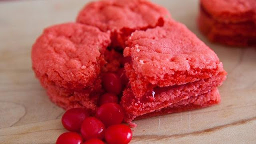 Bake 6 to 10 minutes or until set. While still warm, cut cookies with 3-inch heart-shaped cookie cutter. In 6 of the cookies, use small round cookie cutter to cut out center of heart. Gently remove cutout portion of cookie. Cool 5 minutes; remove from cookie sheet to cooling rack. Cool completely.