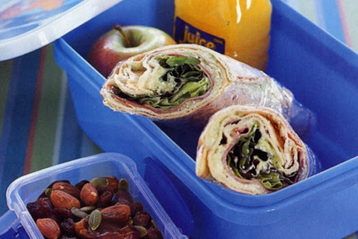 Spread tortillas with cheese mixture, layer with lettuce and ham, roll up and serve.