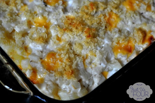 Bake in 350 degree oven for 40-50 minutes until the casserole is bubbly and the panko crumbs are brown.