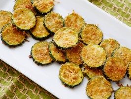 Bake the zucchini rounds until browned and crisp, 25 to 30 minutes. Remove with spatula. Serve immediately.