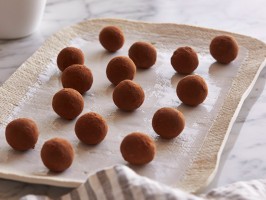 Use a teaspoon to scoop out chocolate. Use your fingertips to shape into balls about the size of a cherry. Set the chocolate balls on a parchment-lined tray.