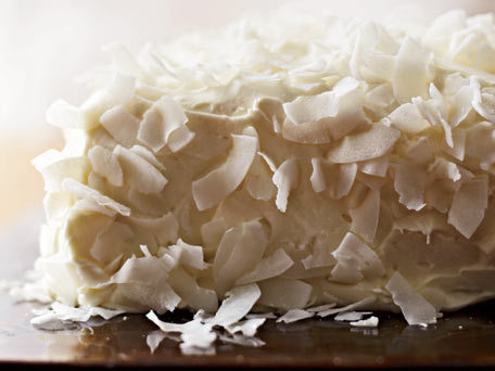 1. Make the Cake: Preheat the oven to 250°. Butter a 9-by-13-inch metal baking pan and line the bottom with wax paper or parchment paper. Butter and flour the paper. In a medium bowl, whisk the cake flour with the baking powder and salt. In a small bowl, whisk the coconut milk with the vanilla and coconut extracts.