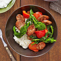 - 1 pkg (12 oz) fully cooked roasted pepper and Asiago or Italian-style chicken sausage links