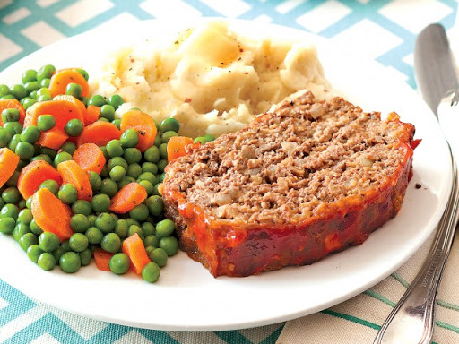 Bake for 45 minutes. Carefully spread ketchup on top; bake for 10 minutes longer, or until an instant-read thermometer inserted into center reaches 160°F. Let stand 5 to 10 minutes; serve.