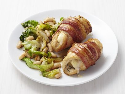 Preheat the oven to 400 degrees F. Cut the bread in half, then cut each half crosswise into 4 strips; toss with 1 tablespoon olive oil and the sage and season with salt and pepper. Put 1 strip of bread and 1 provolone stick across the center of each chicken cutlet. Tightly roll up the chicken around the bread and cheese, then wrap each roll with a piece of pancetta and secure with a toothpick.