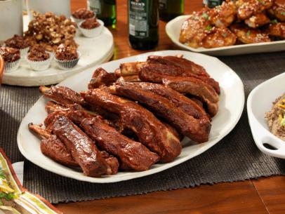 3. Using tongs, remove the ribs to a large plate. Pour off all accumulated liquid and the onions. Return the ribs to the empty slow cooker and pour the barbecue sauce over top, turning the ribs so they are evenly coated. Cover and cook on low for an additional 1 hour. Cut and serve!