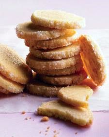 Preheat oven to 350 degrees, with racks in upper and lower thirds. Spread granulated sugar on a piece of parchment; roll logs over sugar to coat. Slice logs into 1/4-inch-thick slices and arrange, 1 inch apart, on two parchment-lined baking sheets. Bake until cookies are golden brown around edges, about 15 minutes, rotating sheets halfway through. Transfer cookies to wire racks to cool. (To store, cover and keep at room temperature, up to 5 days.)