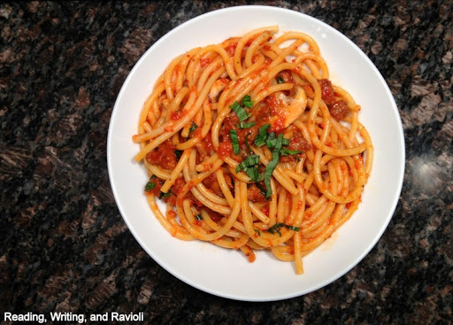 Bucatini with sausage and peppers