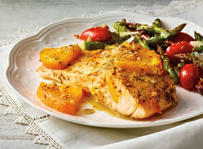 4. Add marmalade and mustard to wine mixture; cook and stir 1 minute or until marmalade dissolves and sauce thickens. Remove from heat; gently stir in butter (so fruit stays intact). Pour sauce over salmon. Serve.