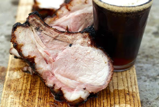 1. Combine the board dressing ingredients on a clean cutting board. Slice the pork loin, place it on the dressing and turn to coat each slice. Serve immediately, preferably with a cold beer.