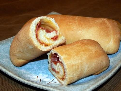 Arrange pepperoni on buttered dough. Cover with cheese. Roll jelly roll style; seal edges. Brush with reserved butter mixture. Let set for 15 minutes. Bake at 350 degrees for 30 minutes.