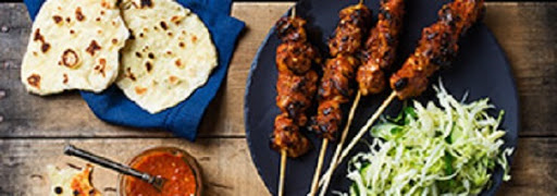7. To serve, divide the chicken skewers, slaw and flatbreads among 4 plates. Serve the remaining piri piri sauce alongside for dipping.