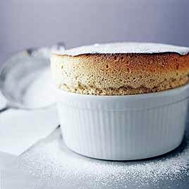 Make the soufflé base and immediately begin beating the whites before the base cools too much. Once the whites have reached the proper consistency, they must be used at once. Do not open the oven door during the first 15 minutes of baking time; as the soufflé nears the end of its baking, you may check its progress by opening the oven door slightly. (Be careful here; if your oven runs hot, the top of the soufflé may burn.) A quick dusting of confectioners' sugar is a nice finishing touch, but a soufflé waits for no one, so be ready to serve it immediately.