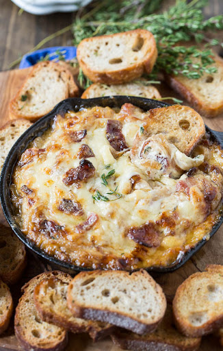 Hot Caramelized Onion Dip with Bacon and Gruyere