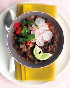 If you like, serve this protein-rich vegetarian dish with brown rice to boost the health factor even more. It's also delicious with chips or tortillas alongside. Canned beans are a great time-saver to stock in the pantry, but they're often high in sodium, so rinse them in a colander before using.