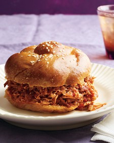 Add kick to lean poultry by simmering it in a tangy sauce until it's tender enough to shred, then serve on buns. You can also use the chicken filling in tacos or in a salad with blue cheese dressing.