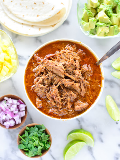 Allow pork to soak for 10-15 minutes, then serve it warm, heaped on warmed corn tortillas.