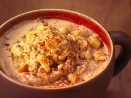 To serve, top the ricotta cappuccino with crushed biscotti. Sprinkle with cinnamon and cocoa powder.