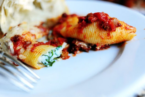 Three Cheese-Stuffed Shells with Meaty Tomato Sauce