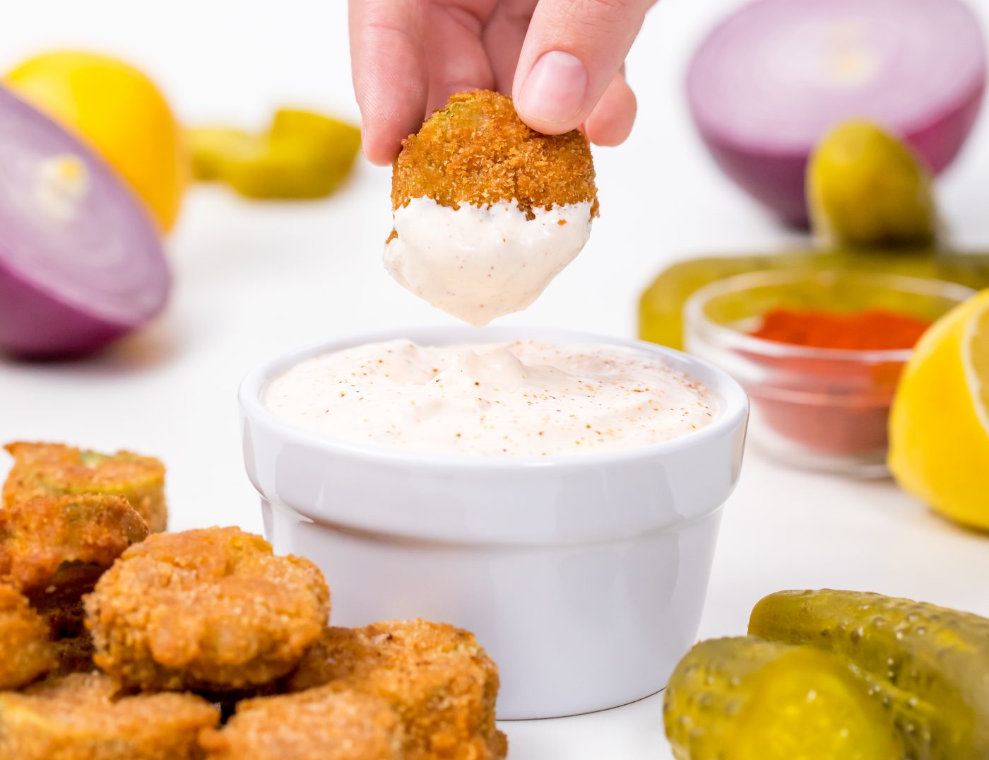 Pat pickles dry with paper towels and allow to air dry until ready to fry.