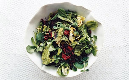 - 12 cups mixed salad greens such as romaine, watercress, and Bibb and/or Boston