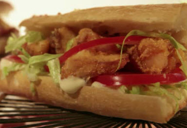 For the po' boys: Cut open the baguettes longwise, three-quarters of the way through the bread. Spread the cut sides with the creamy garlic spread. Divide the shrimp and tilapia among the baguettes and top with lettuce, tomato and hot sauce, if using.