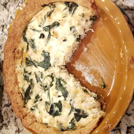 Combine cheese, crab and spinach/onion mixture and stir gently with fork until well blended. Pour into prepared pie crust. Mix milk and egg substitute; pour over crab mixture.