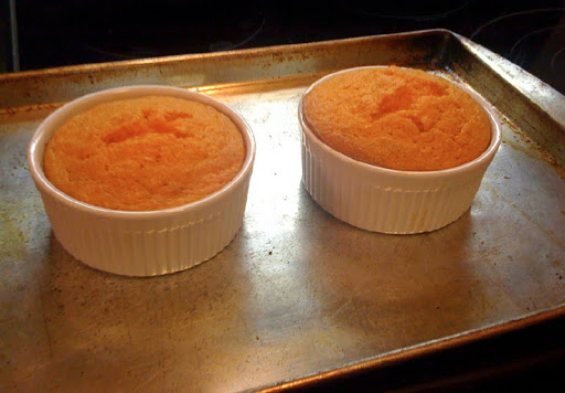 I made this in two ramikins (with leftover batter), using half the amount of all ingredients, and baking for 40 minutes.