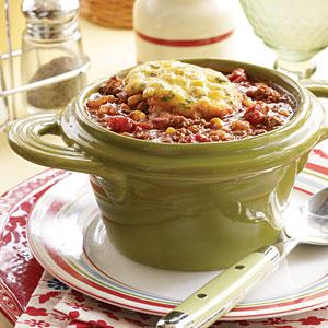 Combine baking mix and cornmeal in a medium bowl; stir in milk, cilantro, and reserved corn just until moistened. Drop dough by rounded tablespoonfuls onto simmering chili. Cook over low heat, uncovered, 15 minutes. Cover and cook 15 to 18 more minutes or until dumplings are dry on top.