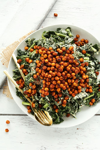 Garlicky Kale Salad with Crispy Chickpeas